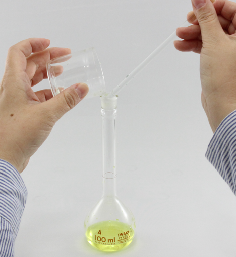 - Transfer the solution from the volumetric flask to the Shading bottle for storage.