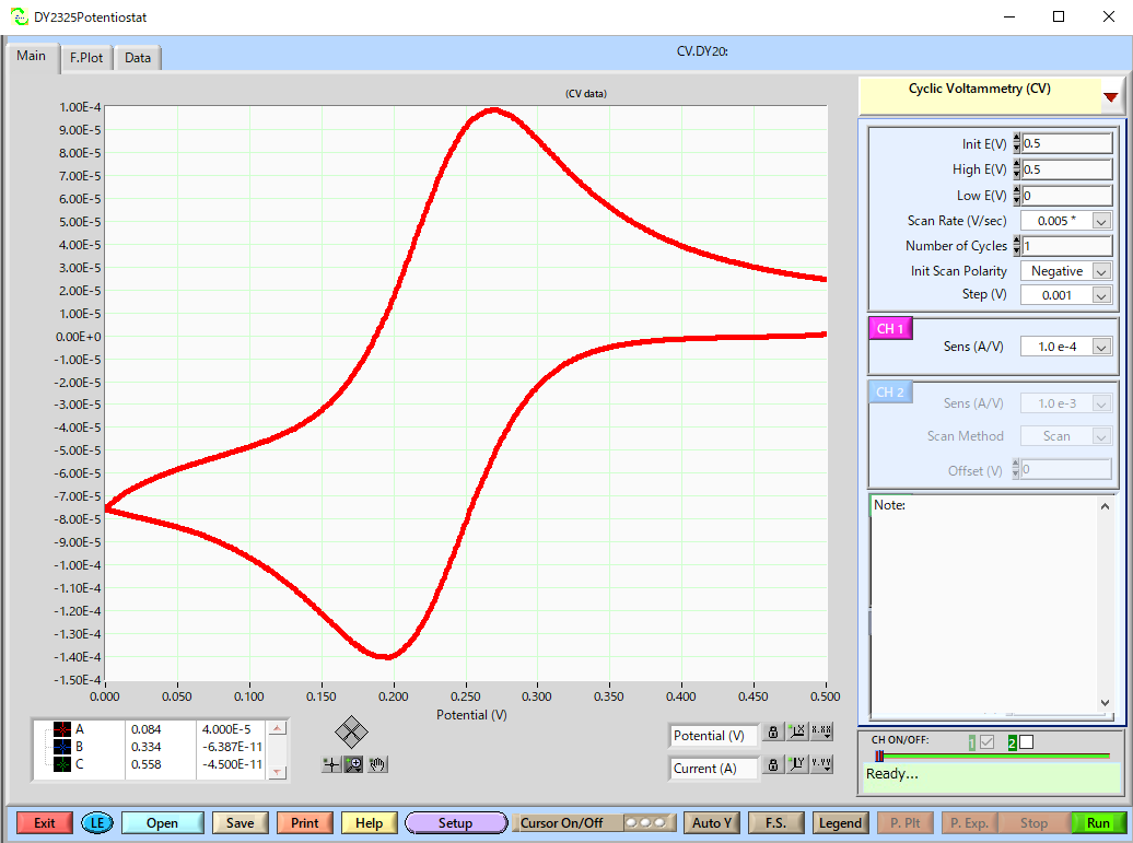 | Test solution : 2 mM Potassium ferricyanide / 1 M KNO3 | |